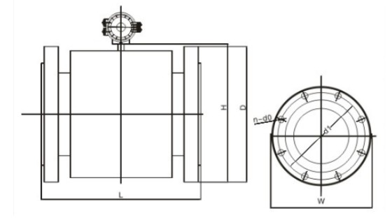 DN200-DN600, 1.0, 1.6MPa sensor and integrated outline drawing